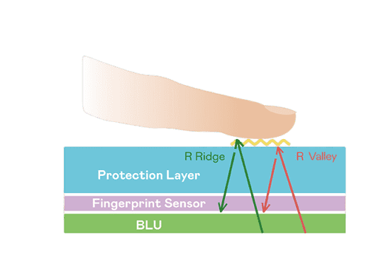 大面积 TFT 光感测超高像素密度光学感测技术能精准判定手指反射的极微弱光讯号,,,,即使细致指纹也可清晰辨识,,,并可透过手指脉搏造成的细微灰阶变化侦测心跳,,让身分验证更精确。。。。TFT 架构优化可降低讯号传输干扰,,达到光感测器最佳讯杂比(讯号/杂讯的比例)。。。透过增强光讯号接收强度、、优化感测器电路及导入特殊光学膜材料,,提高感测器敏度。。整合系统之指纹扫描装置可符合最高等级的FBI国际安全规范认证需求。。